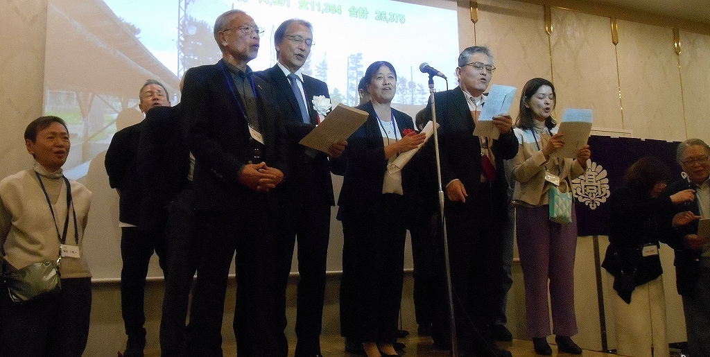 第2部 1.来賓紹介 2.主催者挨拶 3.祝辞 4.母校近況報告 5.講演 6.乾杯 7.校歌・応援歌斉唱